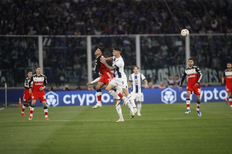 Por el lado de Talleres, el equipo tuvo algunas jugadas aisladas, que casi culminan en gol, como un remate de Marcos Portillo que tapó Franco Armani, pero, tras esto, se replegó mucho y abusó de los pelotazos.