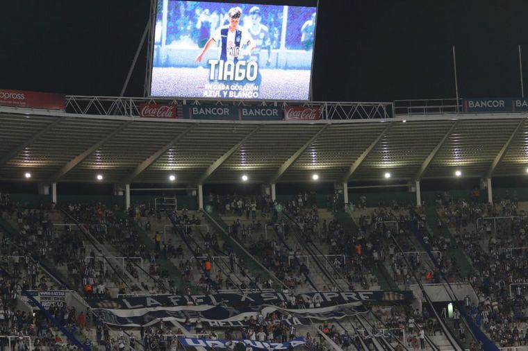 Los jugadores del plantel superior ingresaron al campo con una remera blanca con la imagen de Tiago y una frase que decía “Thiago en cada corazón azul y blanco”.