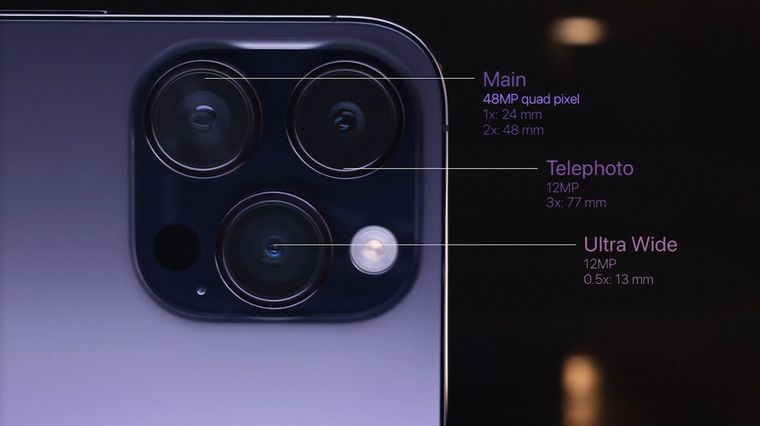 El iPhone 14 Pro tiene un sensor principal de 48 megapíxeles. Usa todos los pixeles del sensor para hacer foco, algo que Motorola está usando este año también.