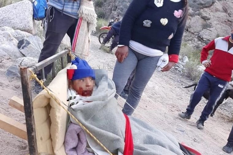 Como en ese lugar no cuentan con servicios de salud y no había nadie que lo pueda socorrer, la gente de la comunidad armó una camilla y se turnaron para descender desde el cerro hasta la localidad La Soledad.