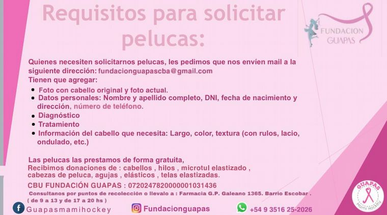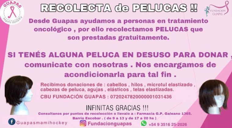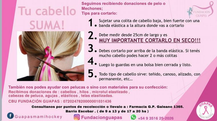 Para consultar las sedes para enviar el cabello o elementos de confección, podes comunicarte al 351 625-2026 (Malvina) , escribir al [email protected] o por las redes sociales.