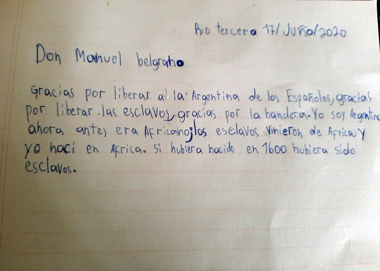 Emotiva carta a Manuel Belgrano de un niño de Guinea Bissau