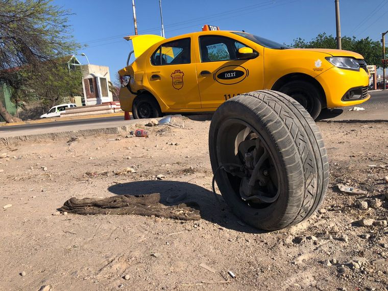 El impacto fue tan fuerte que el automóvil particular terminó con una rueda menos. Sin embargo, los conductores resultaron levemente heridos.