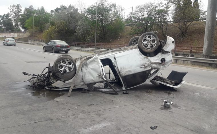 El conductor del vehículo, por motivos que se desconocen, perdió el control del auto, que dio varios tumbos y quedó con las ruedas hacia arriba sobre la calzada, que se encontraba mojada producto de la lluvia.
