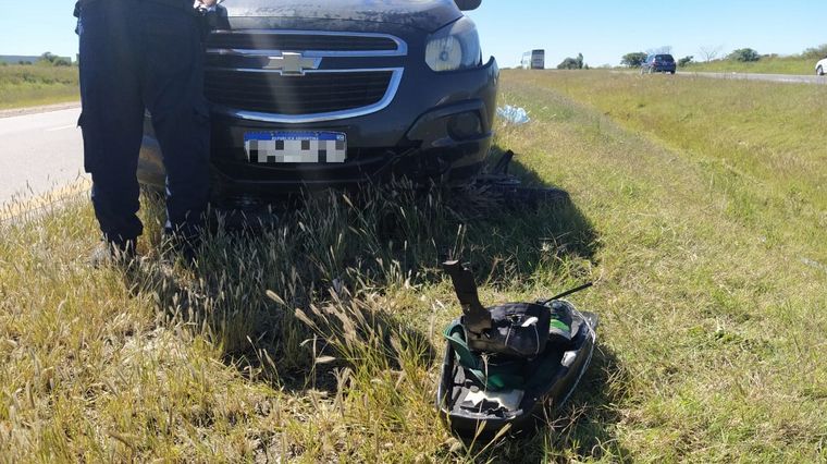 El motociclista logró arrastrarse hacia la banquina segundos antes de que un Chevrolet Spin chocara la moto y la arrastre decenas de metros. El impacto fue tal que horas después del accidente la motocicleta continuaba incrustada debajo de vehículo.