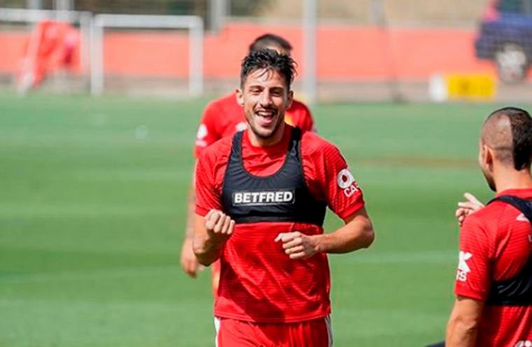 El delantero cordobés juega en el Mallorca. El regreso del torneo lo viven ante el durísimo equipo de Lionel Messi. "Nos jugamos la permanencia", dijo. Entrenaron en el estadio vacío para adaptarse.