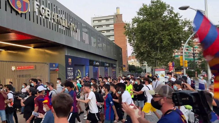 Cientos de fanáticos blaugranas se acercaron hasta el Camp Nou, donde también funcionan las oficinas del club, para reclamar por la continuidad de Messi, pero también por la salida del mandatario barcelonista, eje de todas las críticas.