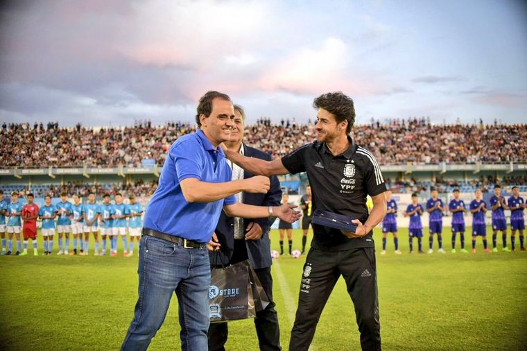 Pablo Aimar fue homenajeado en Río Cuarto antes del partido del Sub 15 argentino