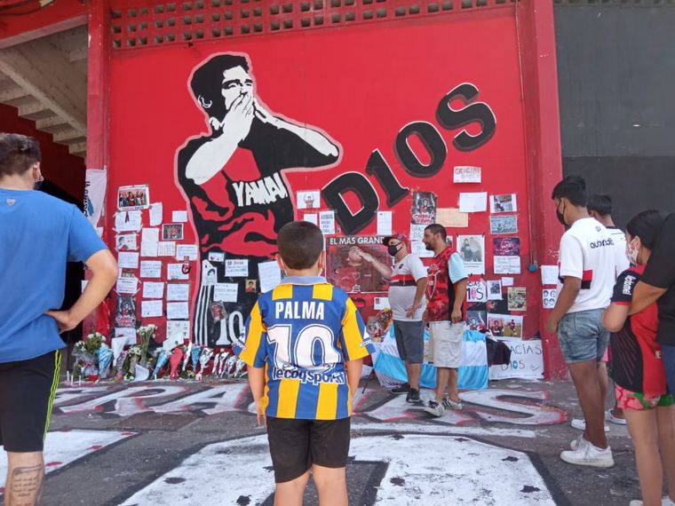 Un nutrido grupo de hinchas de varios equipos se reunieron el miércoles y el jueves de la semana pasada en la puerta de ingreso a la tribuna Maradona, donde improvisaron un santuario para homenajear al extinto mejor jugador de fútbol de la historia, ídolo en todo el mundo.