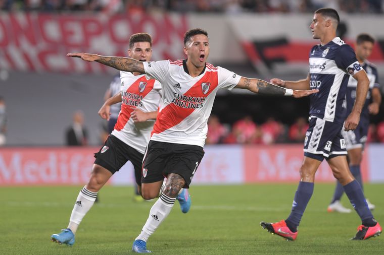 Fue en el “Monumental”. Enzo Fernández, Julián Álvarez y “Juanfer” Quintero, todos de penal, y Braian Romero anotaron los tantos. “El Millo” comparte la cima de la Zona A con Unión y se medirá con Boca en la próxima fecha.