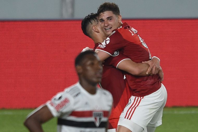 El conjunto "millonario" se impuso con los goles del juvenil Julián Álvarez, a los 10 y 37 minutos, mientras que Diego Costa, de cabeza, había igualado transitoriamente para San Pablo, todo en el primer tiempo.
