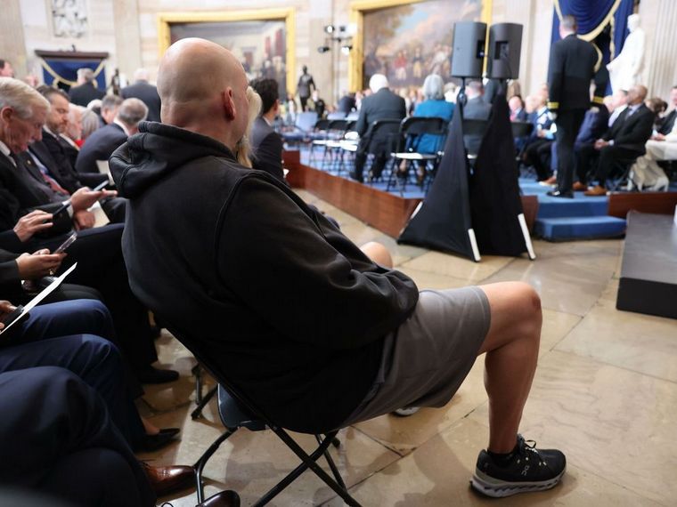 Senator John Fetterman shows up to Trump's inauguration in gym shorts and a Carhartt sweatshirt.