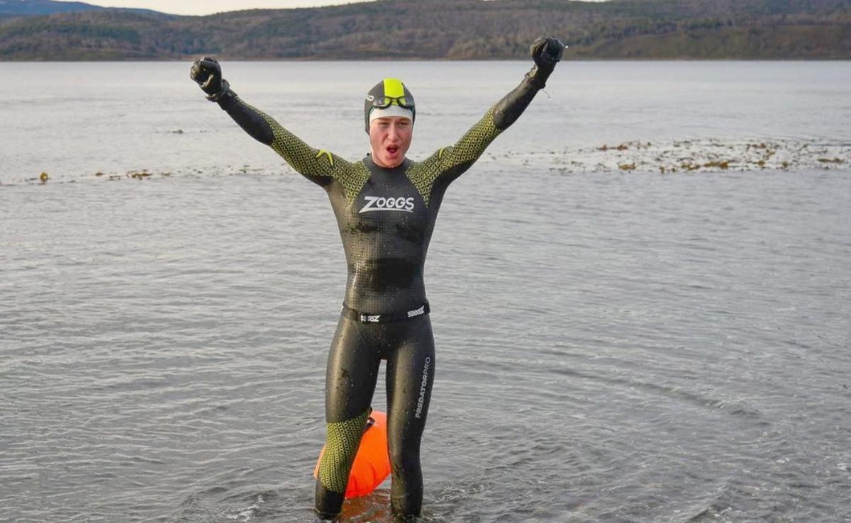 La triatleta, originaria de Vitoria, en el País Vasco, realizó la travesía en aguas gélidas.