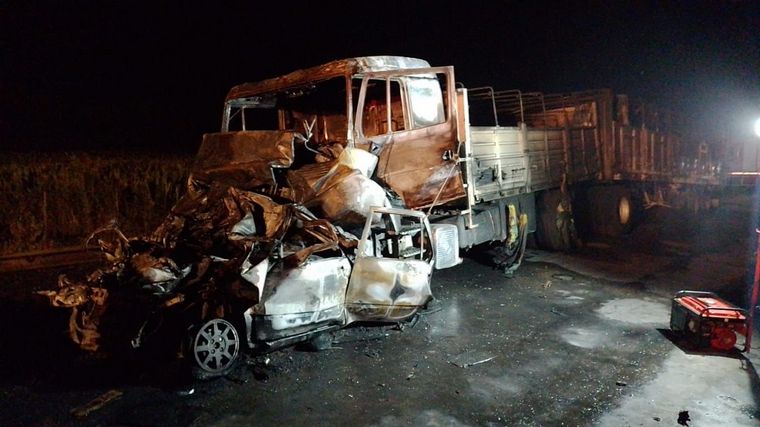 Fue en la ruta provincial 91, entre Serodino y Villa La Ribera, a unos 40 kilómetros al noreste de la ciudad portuaria. Los transportes de carga aplastaron al vehículo menor, que se incendió. Fallecieron sus ocupantes.