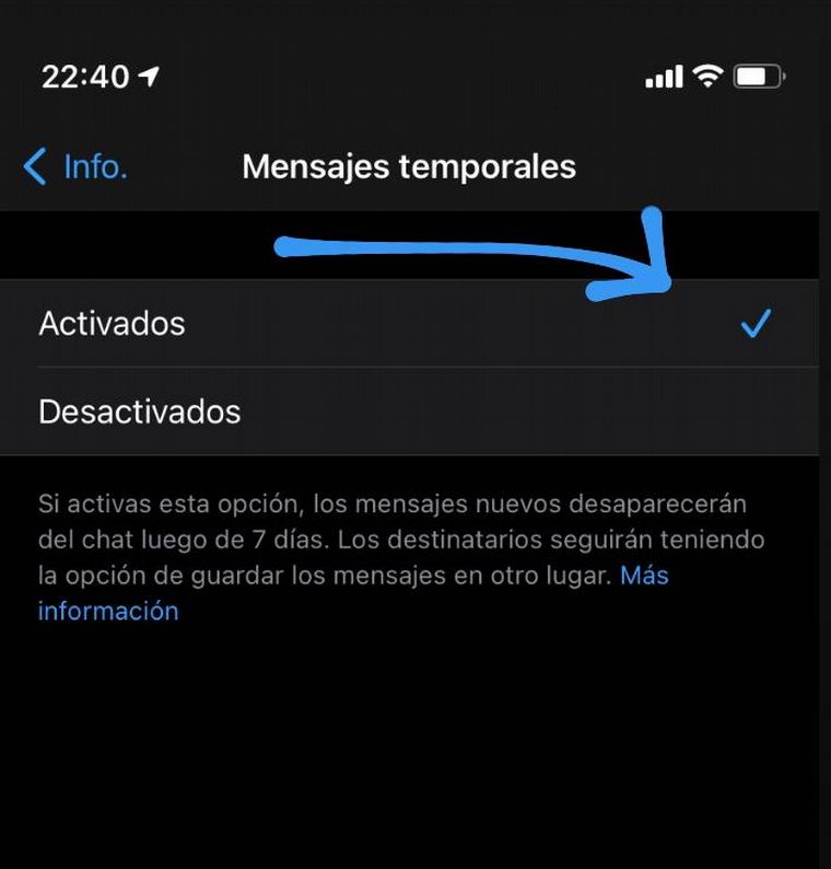 Esta nueva función, llamada “mensajes temporales”, permite que el contenido del chat se elimine automáticamente luego de 7 días. Mirá el paso a paso.