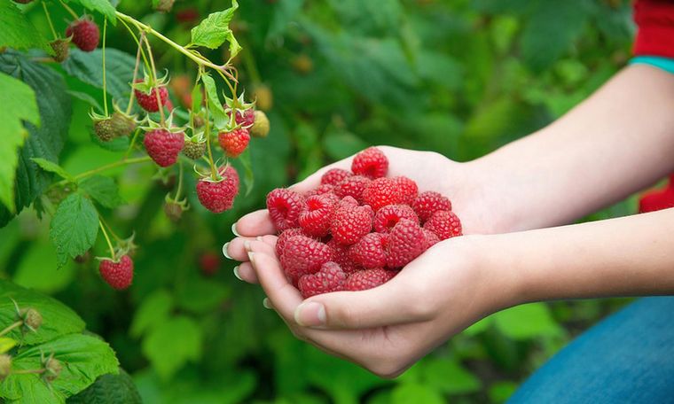 La cosecha se hace frambuesa por frambuesa y quienes lo hacen suelen ser mujeres, porque "son mas delicadas y no aprietan tanto la fruta". Las que están maduras las toman con dos dedos y con tocarlas se desprenden de la planta dejando el corazón de la fruta.