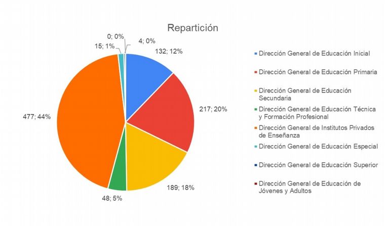 El relevamiento indicó que en el 44% de las veces se trató de instituciones de gestión privada (de todos los niveles y modalidades educativos) y en el 56 restante de gestión estatal (12% de nivel inicial, 20% de primaria, 18% de Educación Secundaria, 5% de Educación Técnica, 1% de Educación Especial).