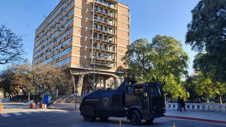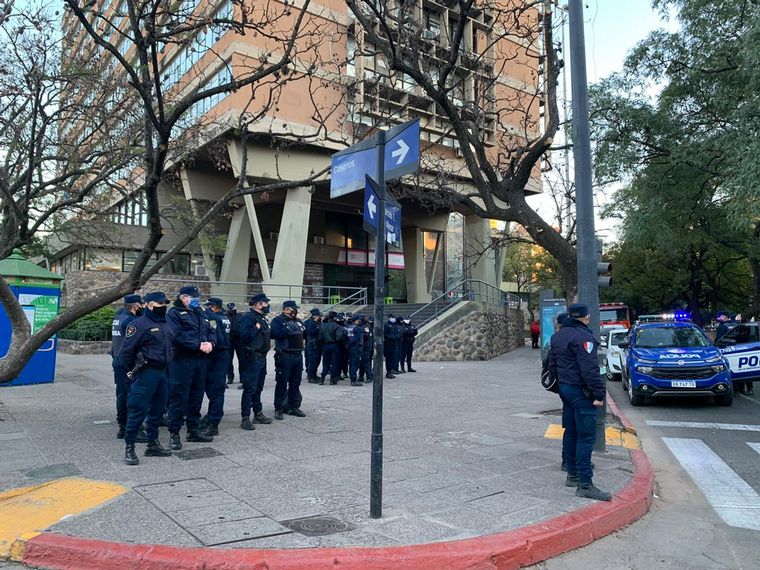 La Policía de Córdoba desplegó en la mañana de este jueves un amplio operativo frente al Palacio 6 de Julio, con más de 400 efectivos en los alrededores del edificio municipal, ubicado en la calle Marcelo T. de Alvear, entre Caseros y 27 de Abril.