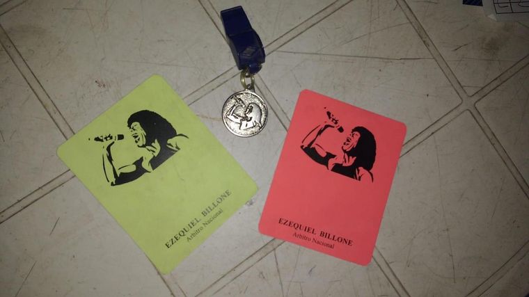 En la Liga Cordobesa es un referente y se lo conoce por las curiosas estampas de sus tarjetas roja y amarilla: la figura del icónico cantante cuartetero Carlos "La Mona" Jiménez.
