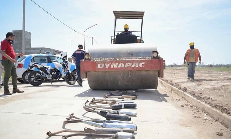 Destruyeron los caños de escape ruidosos en Arroyito