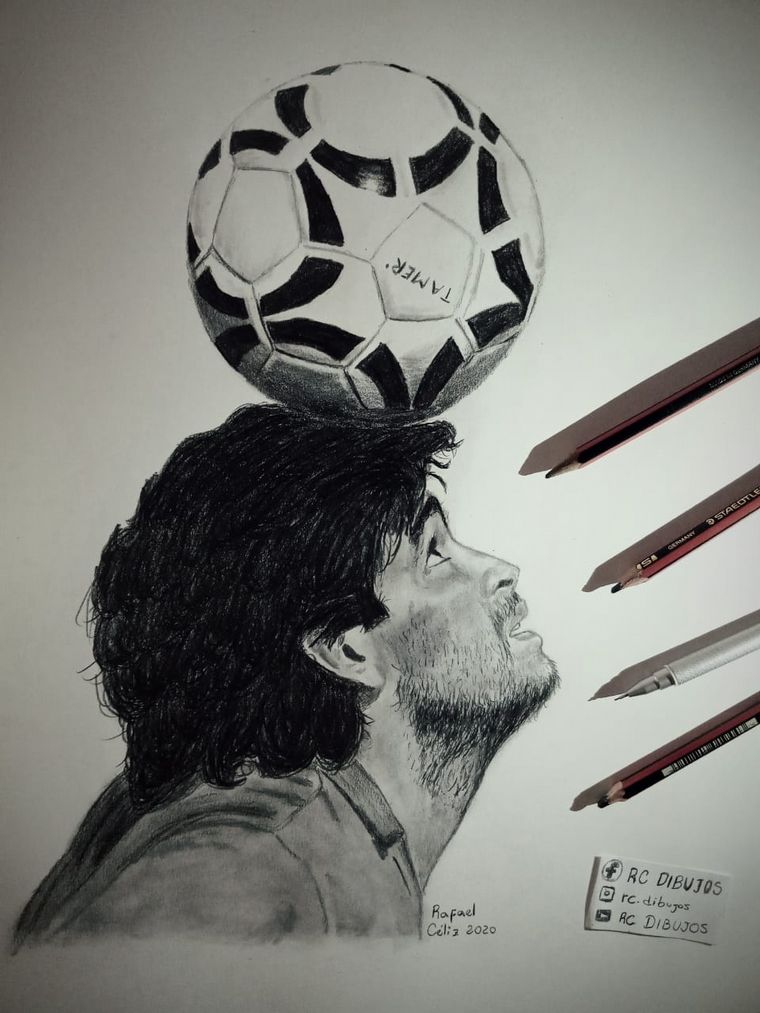 "En noviembre, cuando muere Diego, me inspiré en dibujarlo y busqué una foto no tradicional. Lo terminé tan sólo en tres horas, pero lo que más me llamó la atención es el mensaje que recibí vía redes de un tal Esteban Almirante con un bar de Maradona en Inglaterra llamado 'La Mano de D10S'", señaló.