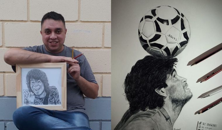 El joven dibujante contó a Cadena 3 cómo uno de sus retratos de Diego Maradona terminó colgado en la pared de un restaurante argentino en Inglaterra llamado "La Mano de D10S".