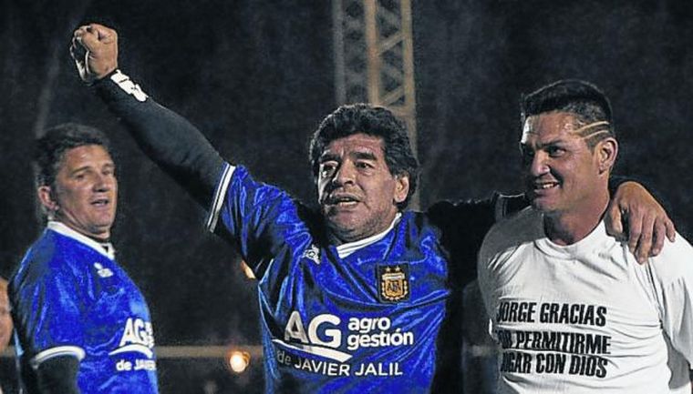 La última vez que Diego Maradona jugó al fútbol en Córdoba fue en 2014, por un evento solidario en Río Tercero.