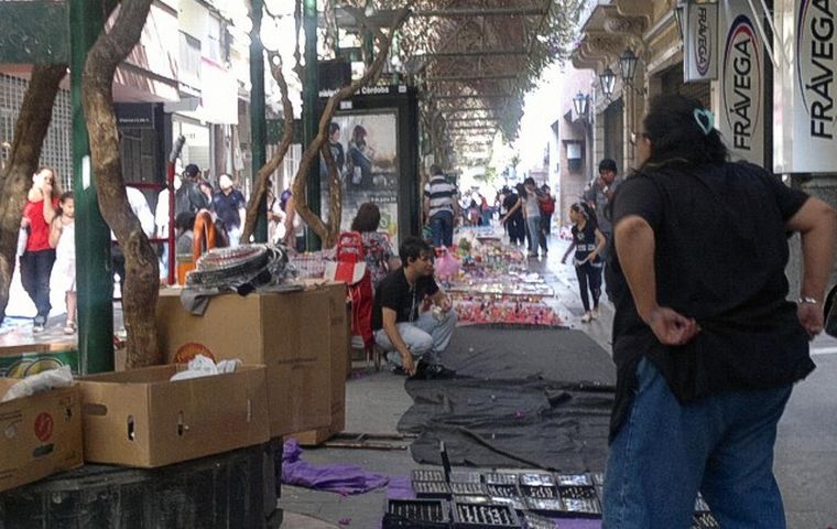 Ante un cambio de turno de inspectores municipales en la ciudad de Córdoba, vendedores ambulantes se instalaron nuevamente este jueves en la peatonal -San Martín-.