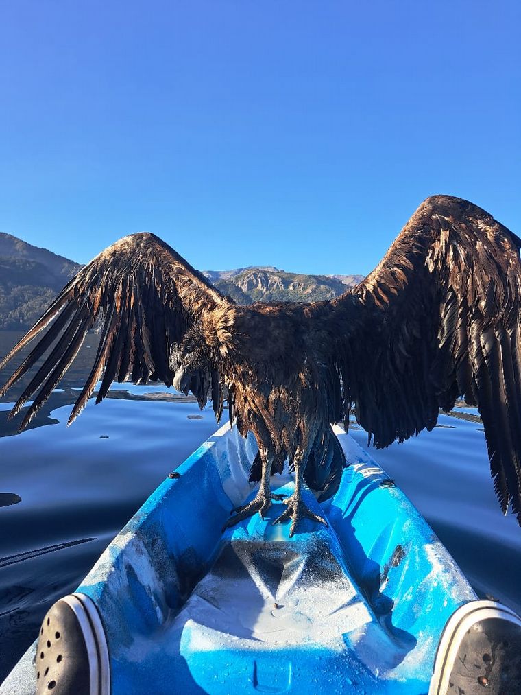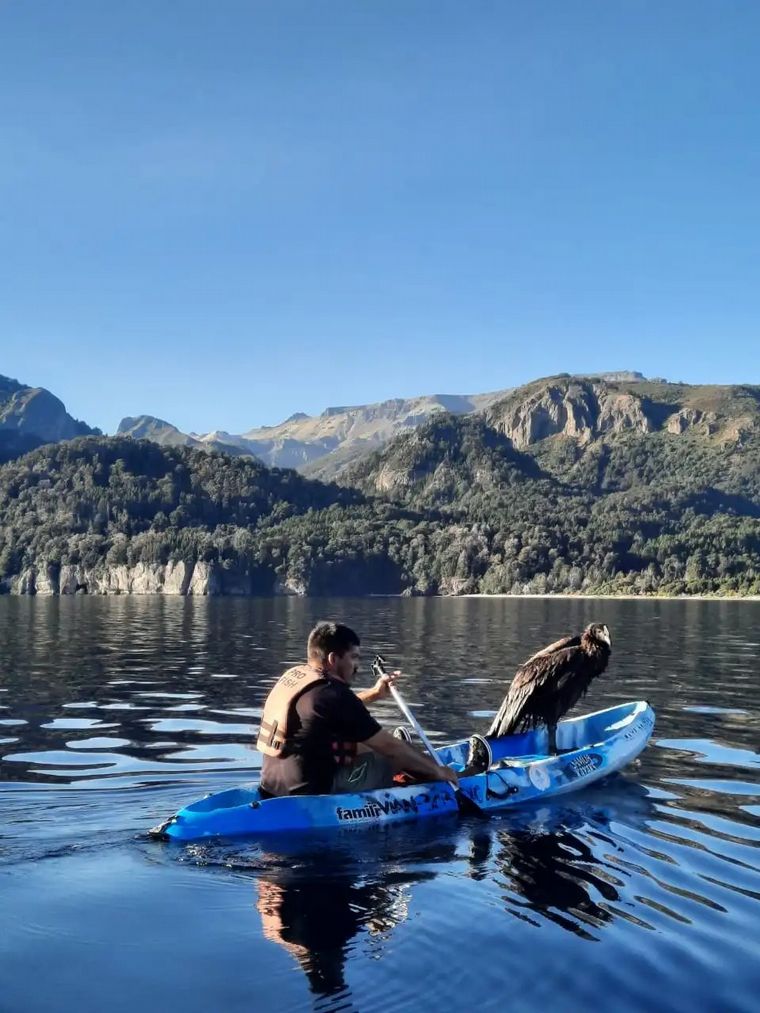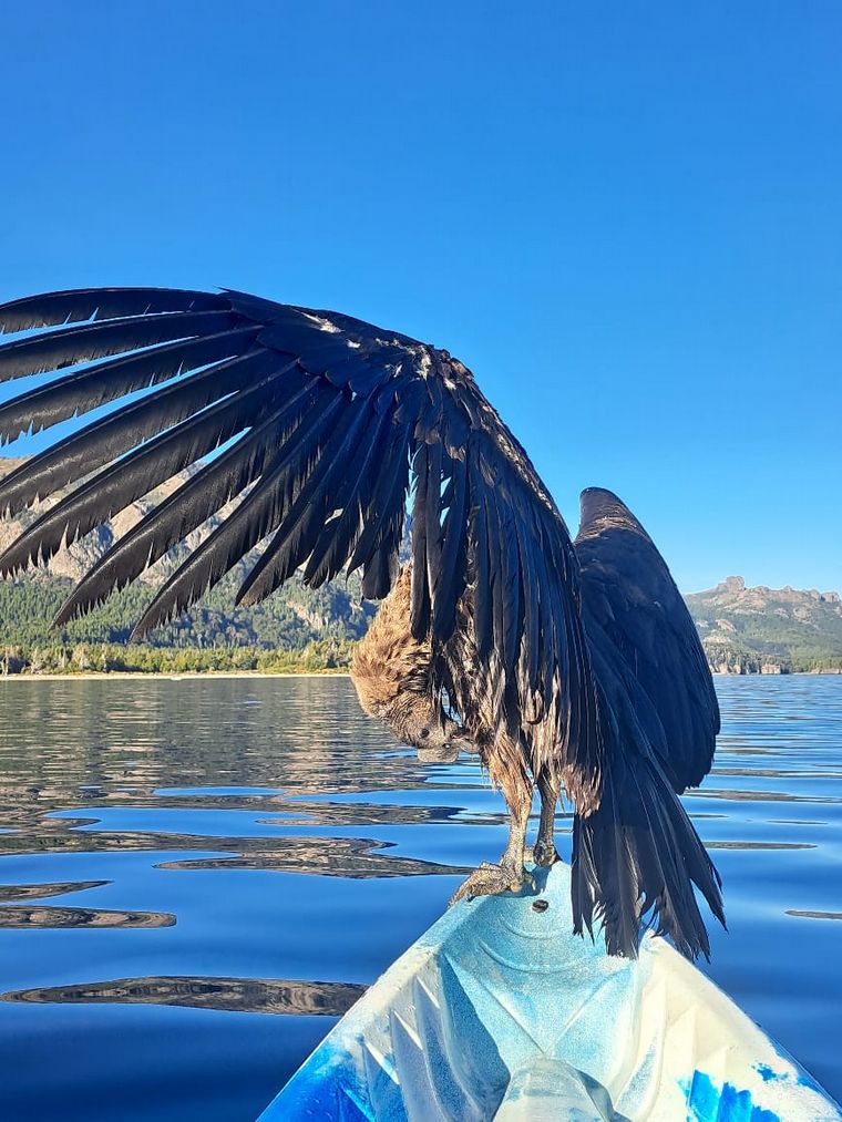 “Fui a buscarlo en el kayak y unos turistas me dijeron dónde estaba. Lo encontré muy alterado: es un animal que no está habituado al agua. Hicimos varios intentos para subirlo, hasta que, en un momento, el animal lo hizo por su cuenta y abrió las alas brindando un espectáculo maravilloso para cualquiera que lo veía”, expresó el guía, que contó que se llevó una picadura en uno de sus dedos, cuando intentaba ayudarlo para subir a la embarcación.