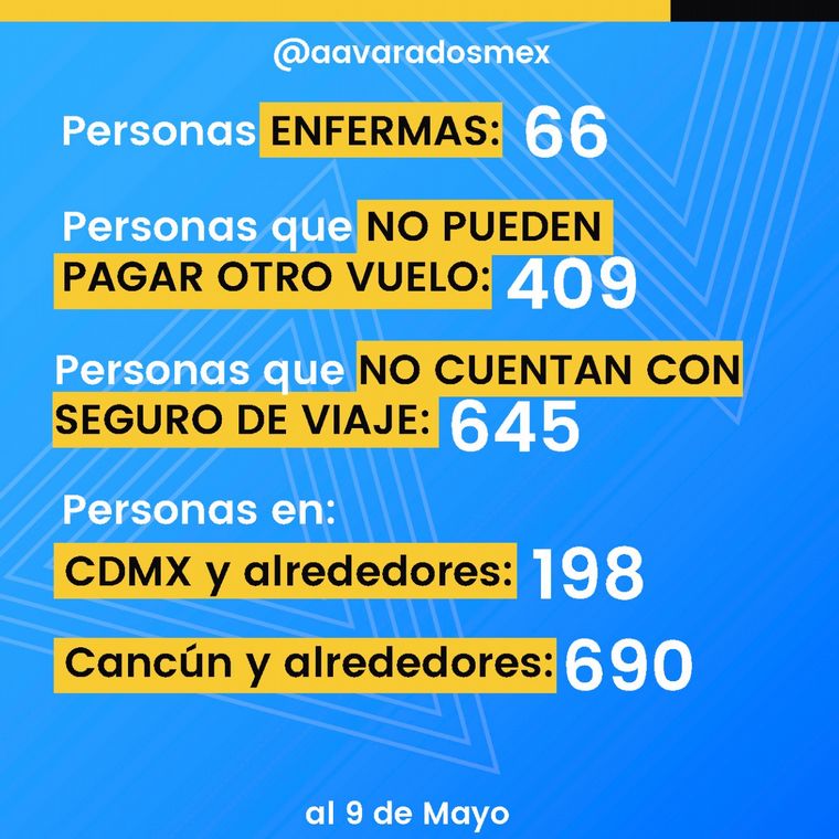 Apuntó que hay un vuelo de repatriación desde la primera ciudad el próximo 18 de mayo, pero que para la capital “no hay desde fines de abril y no tienen proyectos de un vuelo”.