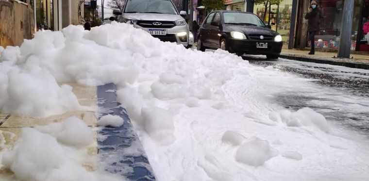 Un insólito hecho se registró este martes a la tarde en San Luis cuando una espuma copó las calles céntricas de la ciudad entre General Paz y Belgrano.