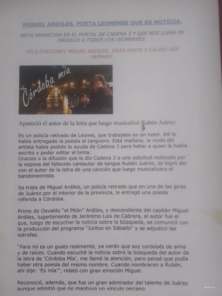 Miguel A. Ardiles, Leones, Córdoba.