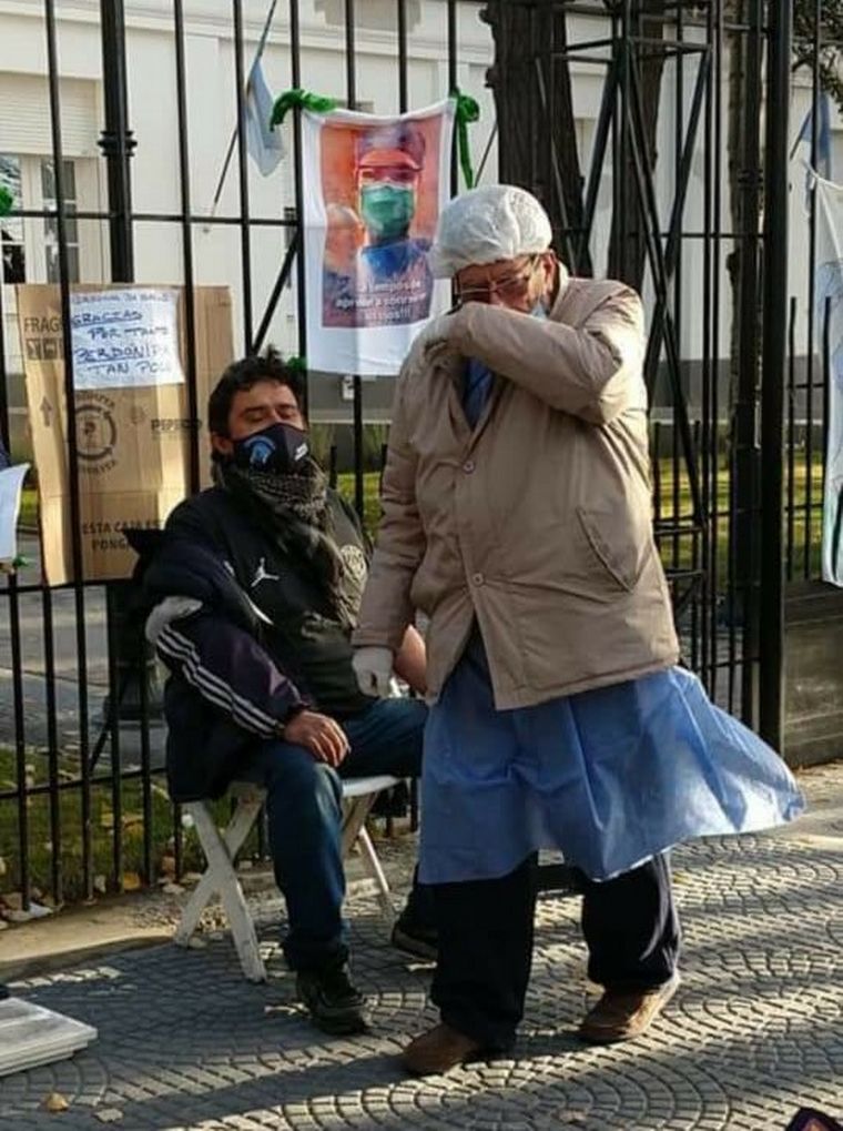 Manuel Piris está protestando frente a la Gobernación en busca de mejores condiciones salariales. Este viernes se capturó en una imagen, la reacción de un médico que fue a controlar sus signos vitales. Mirá.
