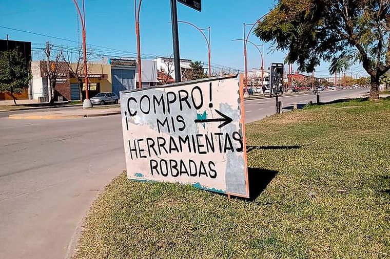 Le robaron sus herramientas y en un cartel ofrece comprarlas