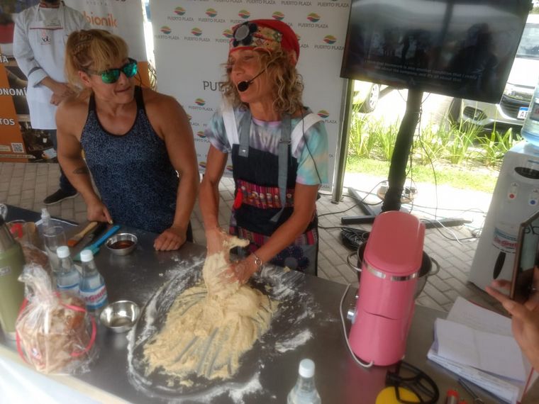 Maru Botana se hizo presente en el lugar y acompañó cocinando pan dulces a beneficio.