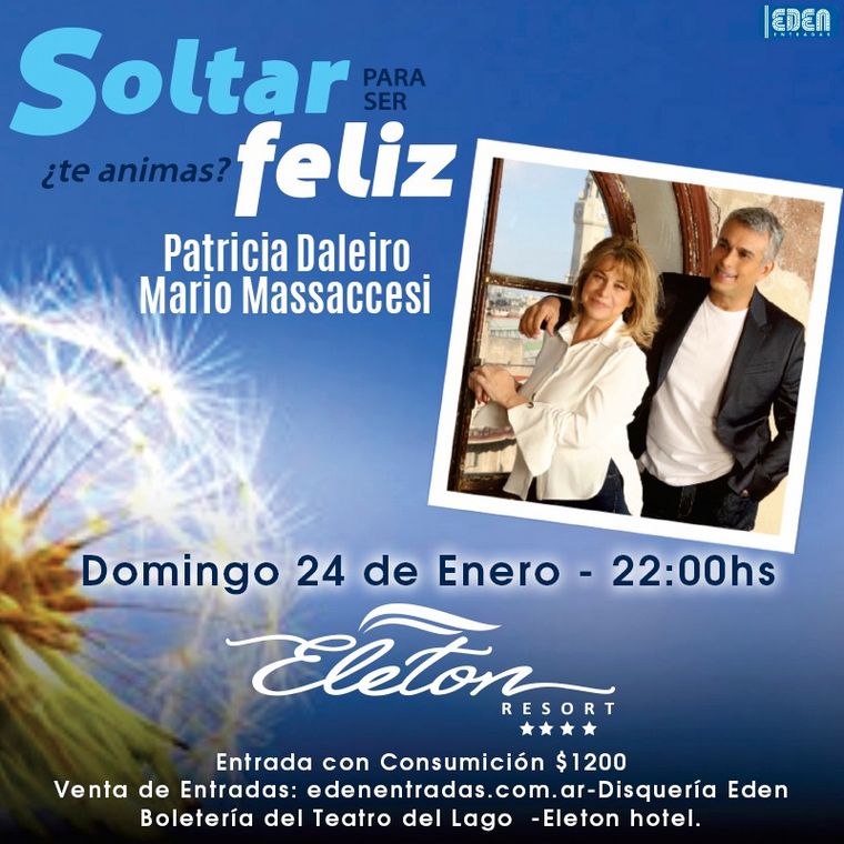 El periodista y la psicóloga Patricia Daleiro comparten el título "Soltar para ser feliz". El encuentro -que será el domingo en el Hotel Eleton- invita a la reflexión, al buen humor y a emocionarse.