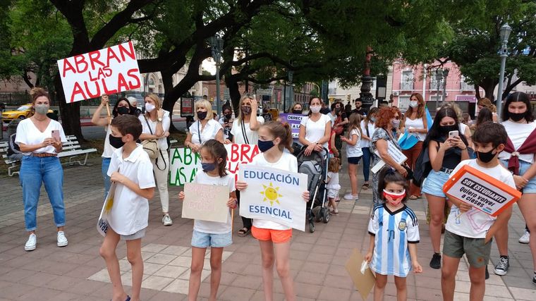 La movilización inició, con guardapolvos, a las 18 en la Plaza Colón. La docente, Silvina Talamoni, explicó en Cadena 3 que solicitan a la Provincia que "comiencen a diseñar un plan escolar para el 2021".