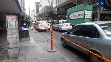 La Municipalidad de San Miguel de Tucumán colocó cadenas en las calles céntricas para impedir que los peatones crucen por cualquier lugar.
