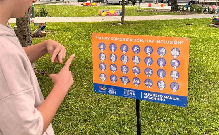 La iniciativa consiste en carteles con el alfabeto del lenguaje de señas. La primera pancarta encontró su lugar en la plaza Chazarreta del barrio Los Naranjos, y su impacto fue instantáneo. Los vecinos, sensibles a la causa, comenzaron a practicar las señas junto a sus hijos, creando un entorno de inclusión y aprendizaje.