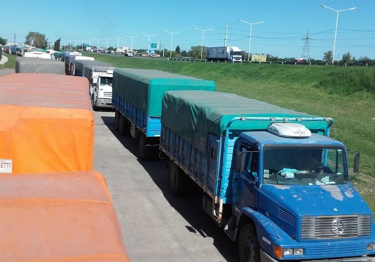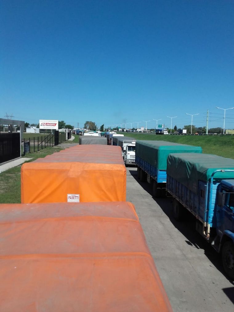 Camioneros que se dirigen al puerto de Rosario deben esperar varios días en las inmediaciones para poder hacer sus descargas.