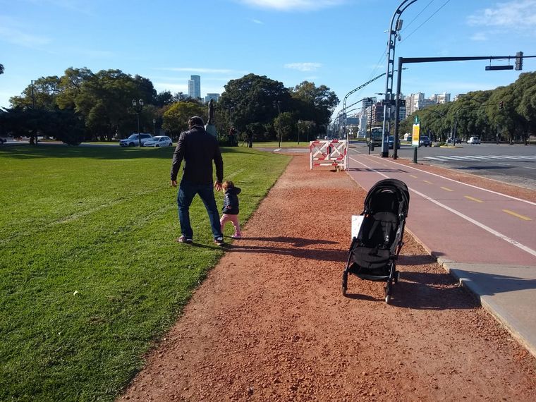 “Es muy lindo que pueda caminar en el pasto. Hace dos meses que estamos encerrados en departamentos. El encierro es cansador", dijo a Cadena 3 un papá que salió con su niña pequeña a la zona de Palermo.