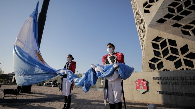 El gobernador Juan Schiaretti festejó este sábado el Día de la Bandera con un acto sencillo en la explanada del Centro Cívico de la ciudad de Córdoba.