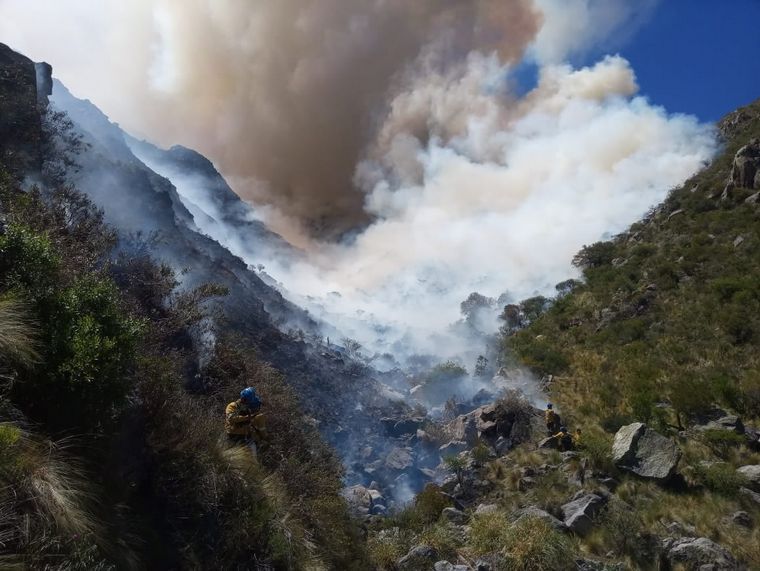 Se estima que el incendio, que tiene lugar entre La Paz y Merlo, provocó la pérdida de más de 1.000 hectáreas.