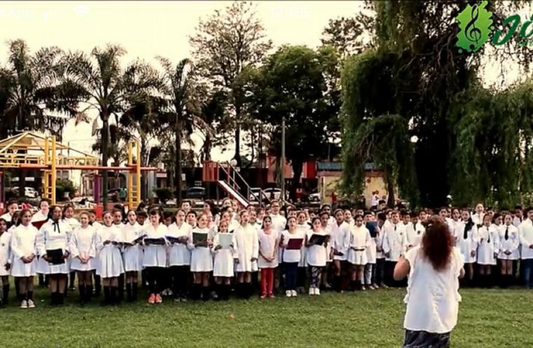 Los más de 300 niños se prepararon durante dos años para interpretar la canción en el Teatro Real, pero no pudieron concretarlo por la pandemia del coronavirus y difundieron a través de la Asociación Jóvenes por el Arte y la Cultura, uno de los videos que grabaron durante uno de los ensayos.