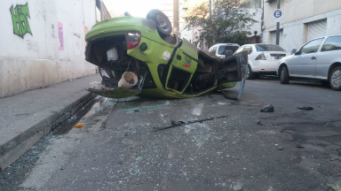 Pese a las tremendas imágenes y a que el remis quedó dado vuelta sobre la calle, no hubo que lamentar ninguna tragedia.