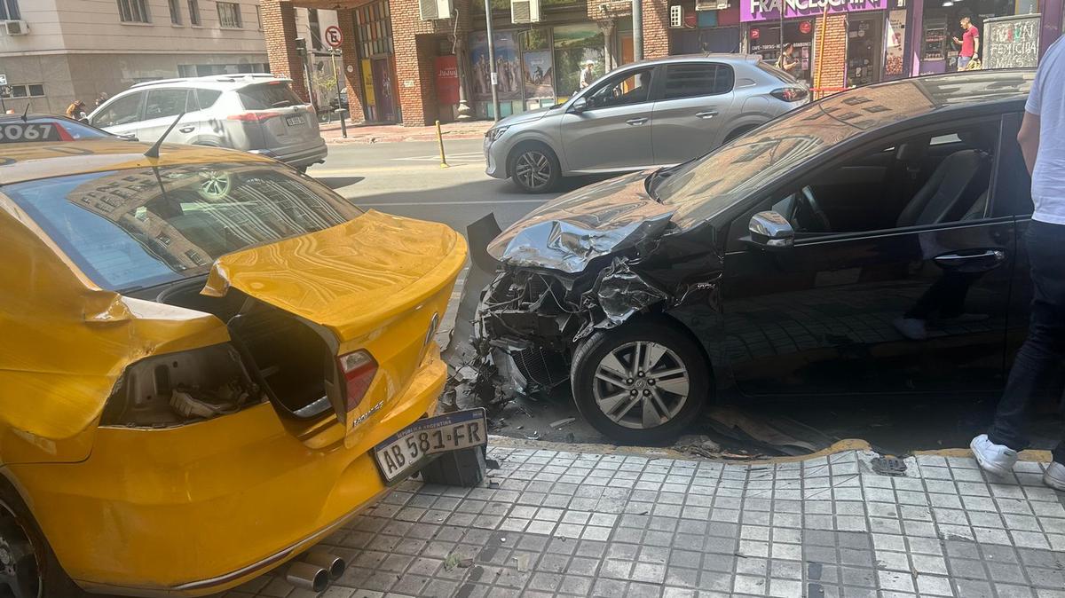 El vehículo, que circulaba por el carril izquierdo, primero chocó contra un árbol, continuó unos metros y luego colisionó con un taxi Volkswagen Voyage, que quedó completamente sobre la vereda.