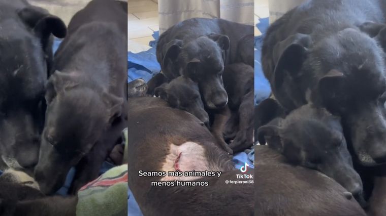 Tras la intervención, volvió a la casa y allí su familia canina la acompañó con amor y cuidado. Fernando filmó todo en un video que conmueve a Tik Tok y muestra la "humanidad" animal.