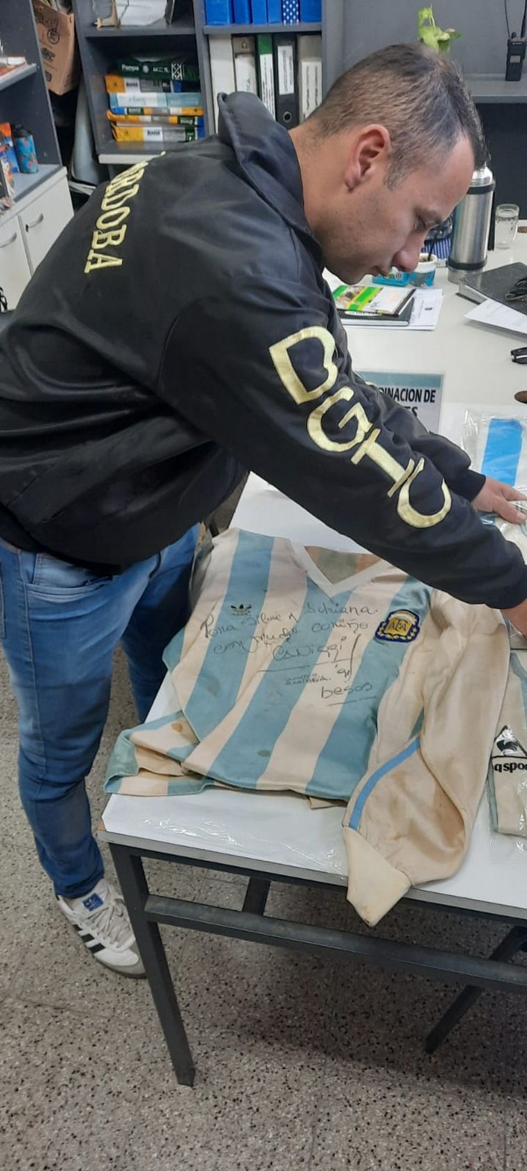 Según explicó a Cadena 3 el comisario Diego Martinelli, se realizó un allanamiento en un domicilio de barrio Alto Verde y allí, encontraron las cuatro remeras que pertenecieron al jugador y que estaban rubricadas con su firma y dedicatoria.
