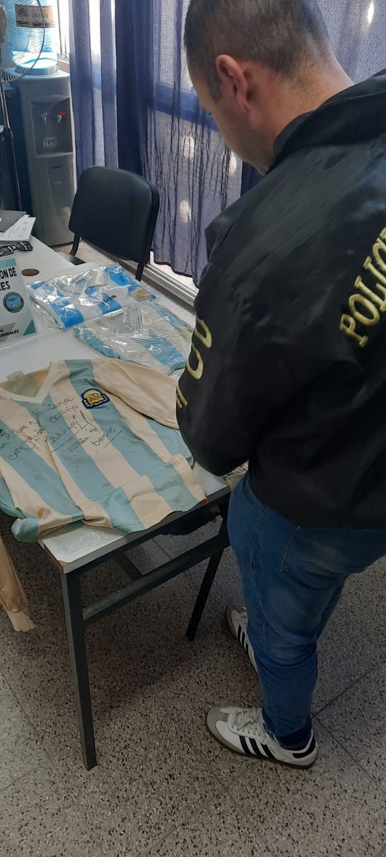 El allanamiento se realizó en el domicilio de Leandro Fouler, quien aseguró ser coleccionista de camisetas y poseer más de un centenar de unidades, incluidas estas cuatro pertenecientes al exdelantero de la Selección argentina.