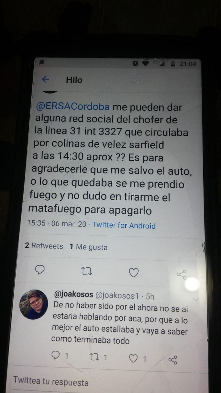 Un vecino que estaba en la zona le prestó un matafuegos pero estaba descargado. En la desesperación, detuvo un colectivo de la línea 31 y se encontró con Julio Molina. El chofer le prestó su matafuegos y esperó hasta que Joaquín apagara el fuego.